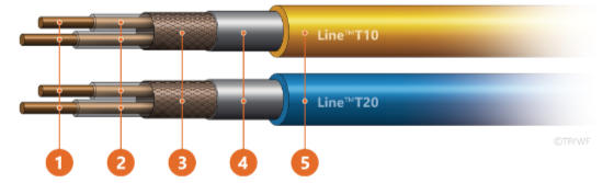 • Používame kvalitné vykurovacie odporové káble Line™T20 s výkonom 20 W na meter a Line™T10 s výkonom 10 W na meter.